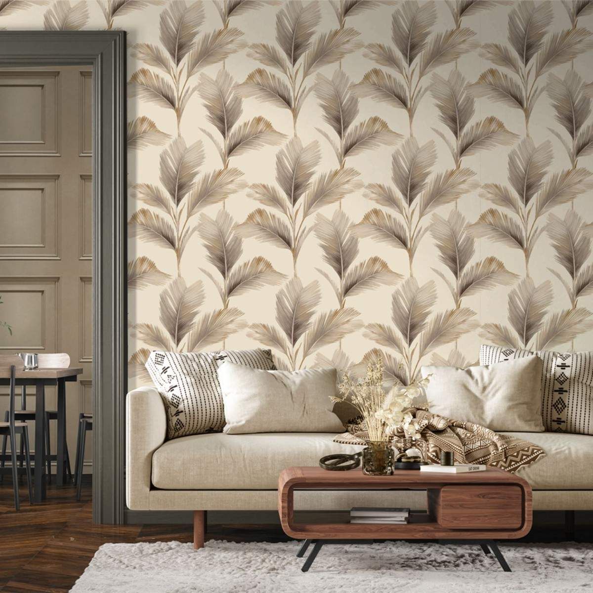 Calculate QuantityIntroducing the revamped Kailani wallpaper range by Belgravia Decor, reimagined for AW24! This timeless classic features lush, large leaves with a subtle pearl shimmer on the tips, adding a touch of sophistication to any space. The rich neutral base pairs beautifully with the iconic Oliana Panel wallpaper, creating a stunning and harmonious look. Kailani brings a fresh, vibrant feel to your home, making it the perfect choice for a stylish and coordinated design.