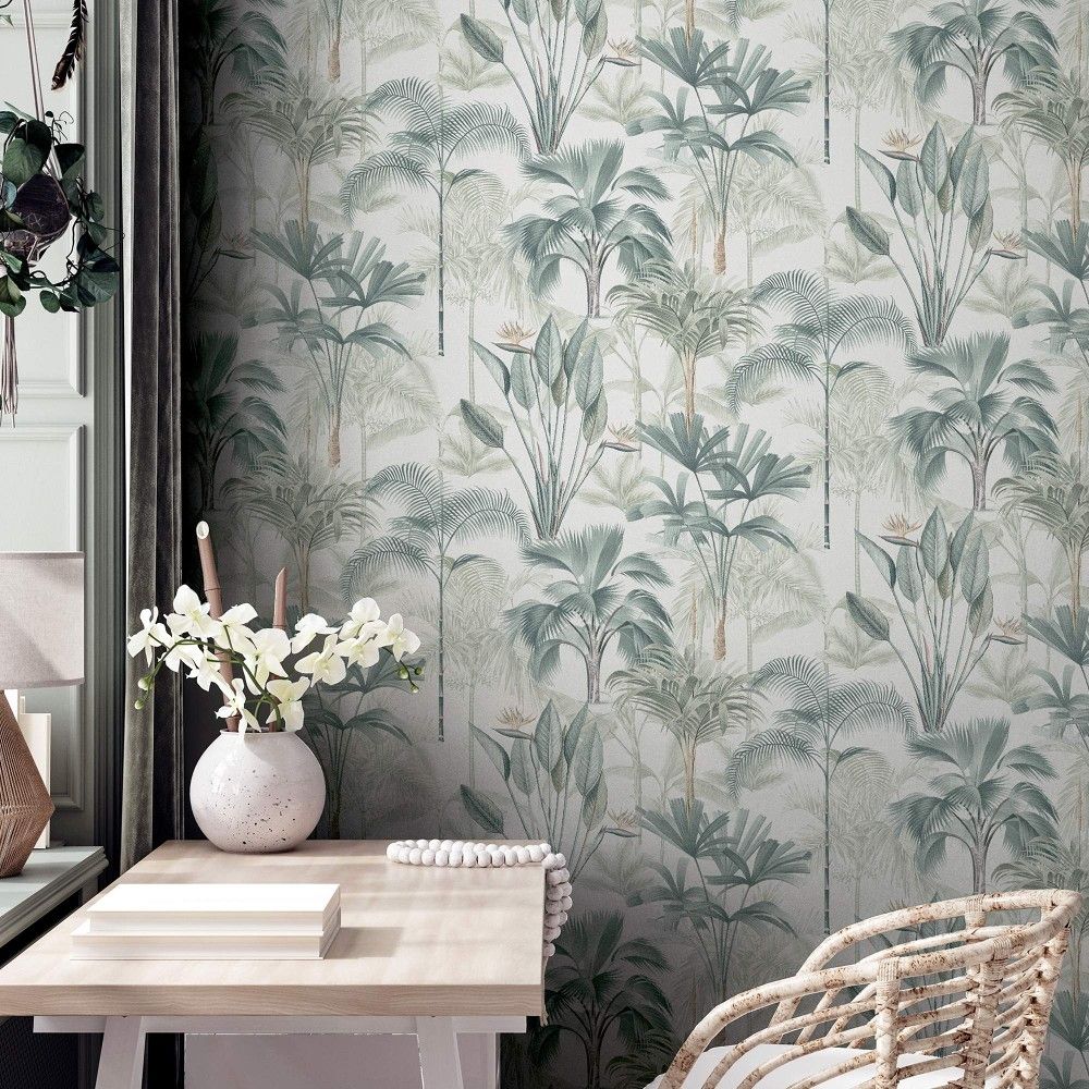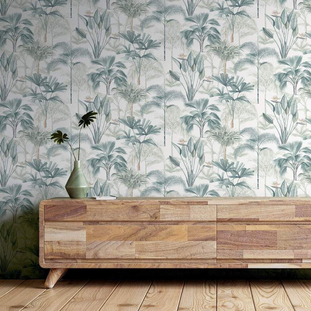 Calculate QuantityThis King Palm Wallpaper is going to transport you to a tropical paradise. It offers a subdued rendition of tropical décor with its assortment of tropical trees in light green tones. Use it as a striking feature wall in your dining room, living room, garden room, or bedroom, or hang it on all four walls for a fully immersive tropical experience. This style is quite adaptable.