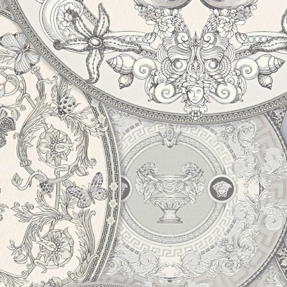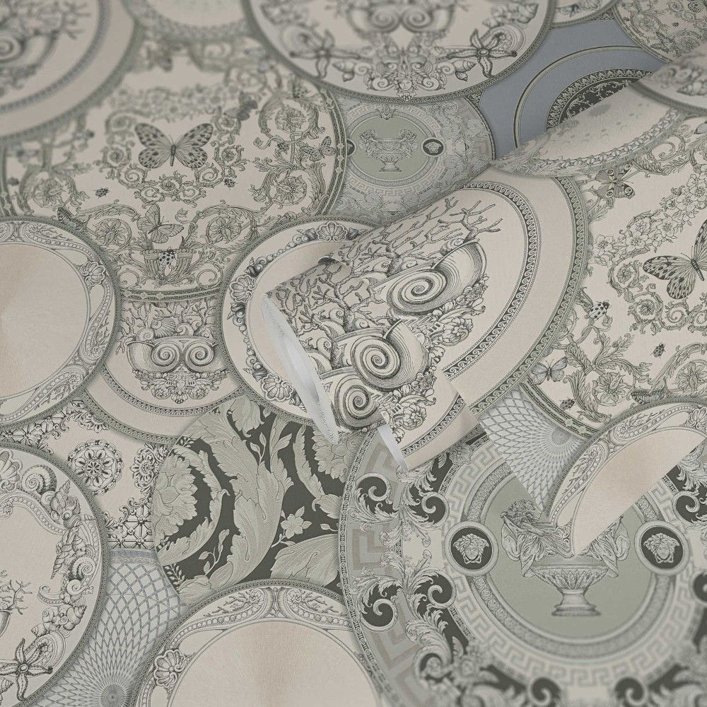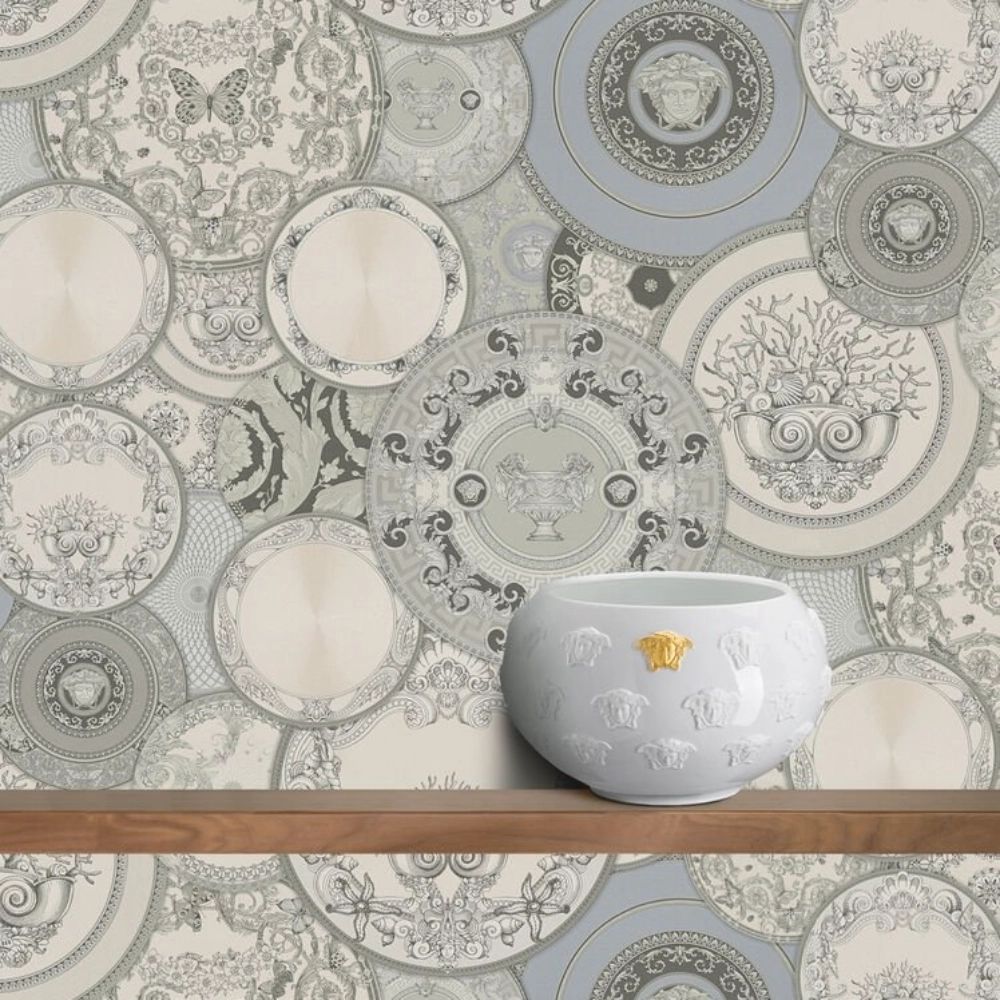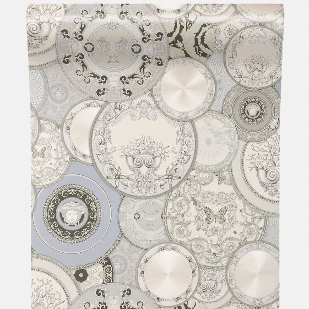 A playful nod to brand heritage, this silver toned wallpaper brings pattern play into interior design. Part of the Les Etoiles de la Mer collection, this wallpaper boasts an eclectic mix of silver and grey-toned plates inspired by the home design