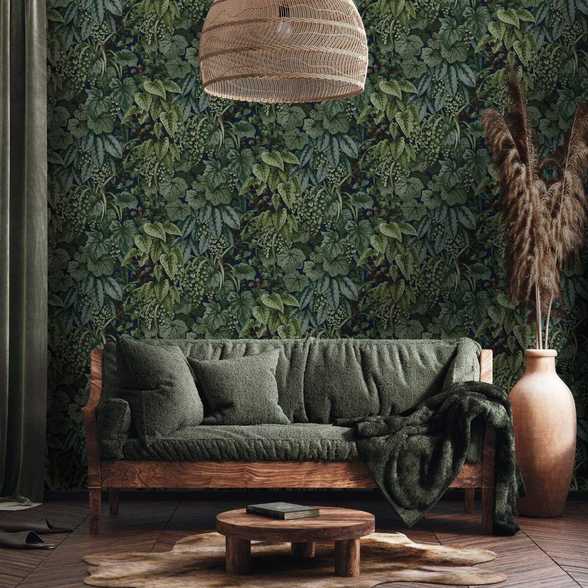 Living Wall embodies a lush and glossy botanical motif inspired by the living wall trend. This wallpaper establishes a vibrant and rejuvenating backdrop for any interior space, its abundant cascading leaves seamlessly merging the indoor with the outdoor ambiance.
