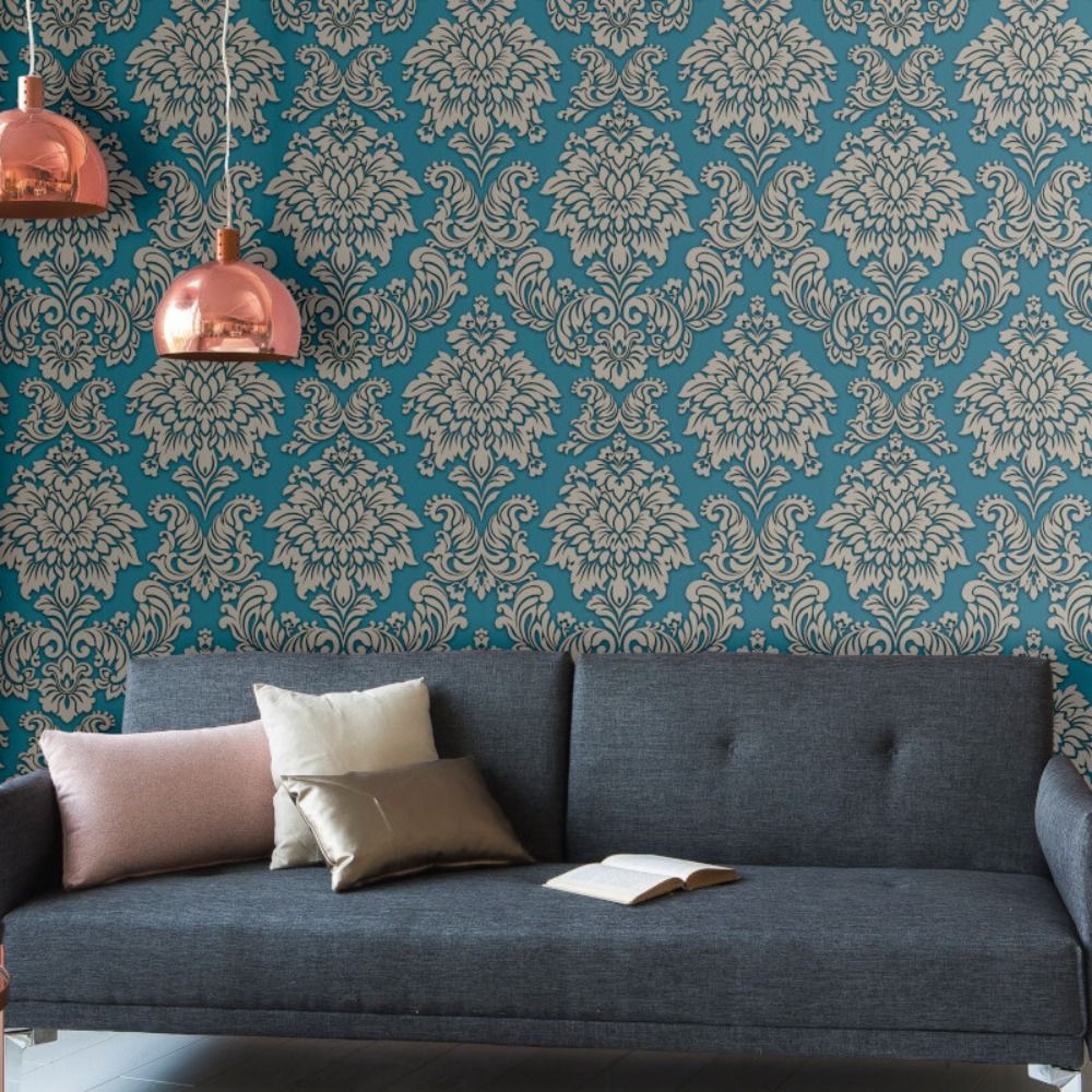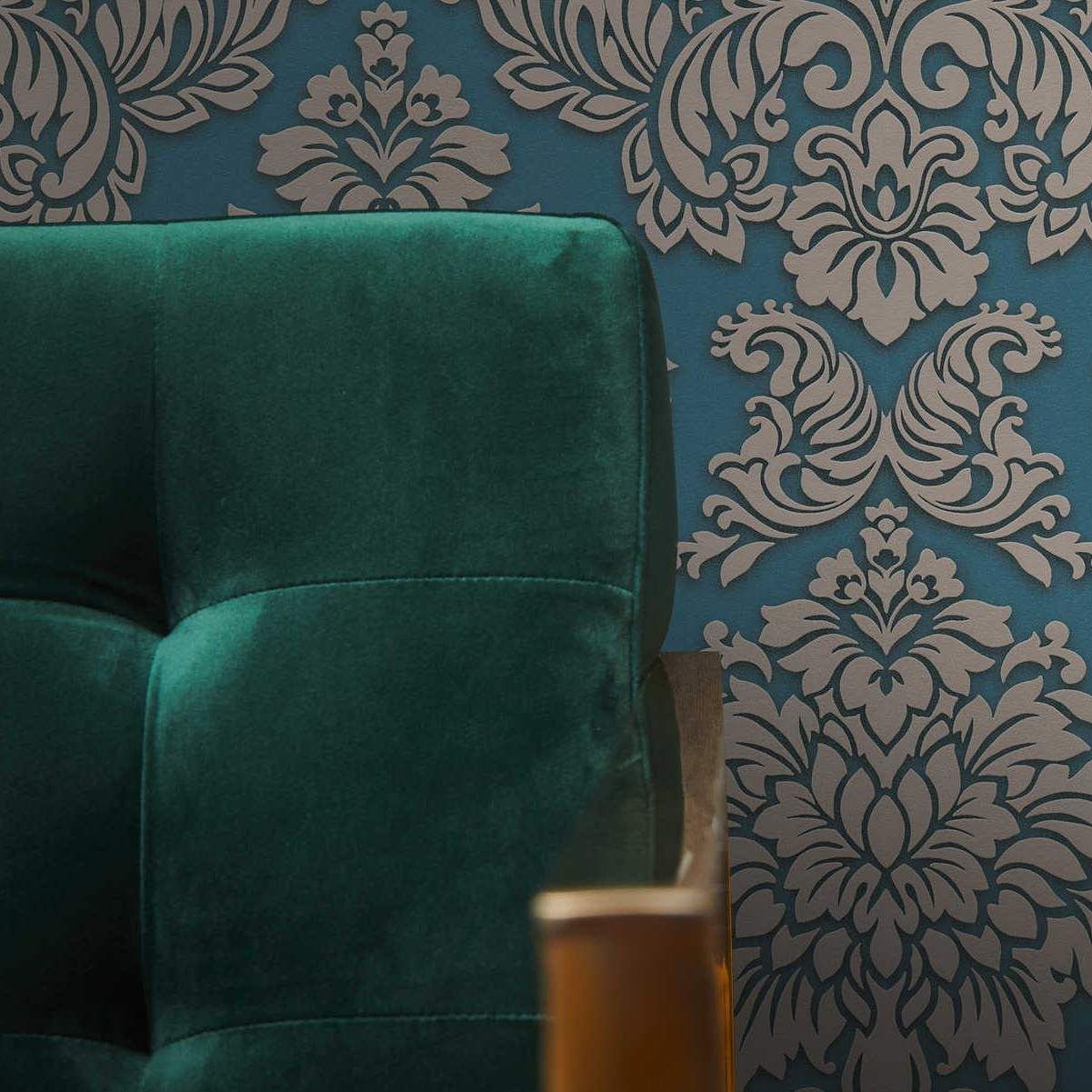 Calculate QuantityAS Creation's Lizzy Damask wallpaper exudes elegance and style with its classical damask-themed print set against a flat matte background, subtly accented with liquid glitter fill. To ensure accurate color and texture representation, it's recommended to purchase a sample.