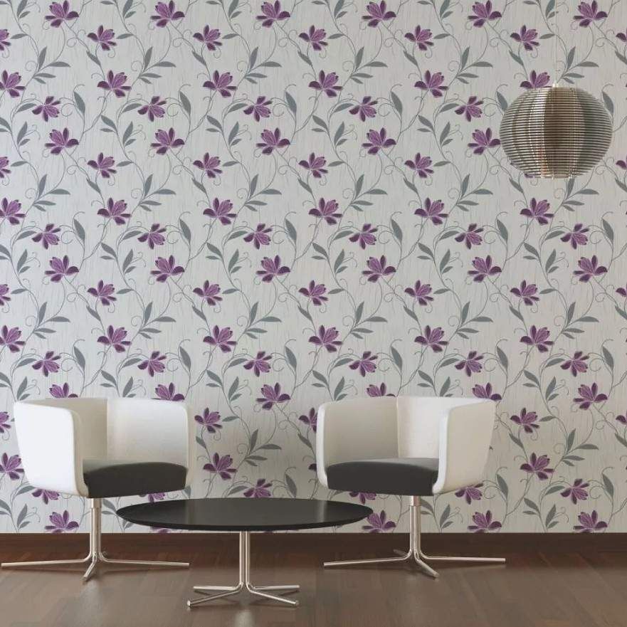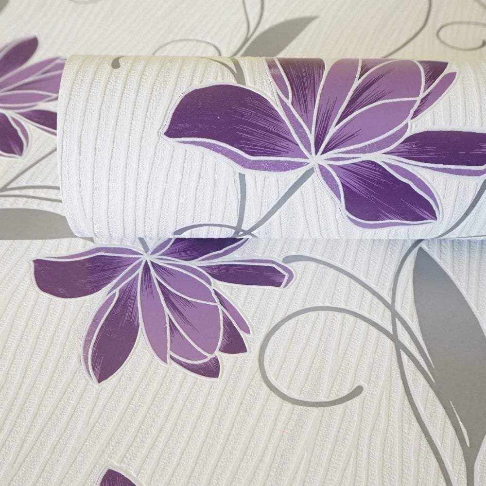 Lotus Floral Trail Purple Leaf Textured Blown Vinyl Wallpaper 3062-34