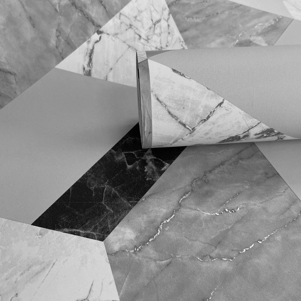 Marblesque Grey Metallic Geometric Wallpaper FD42302