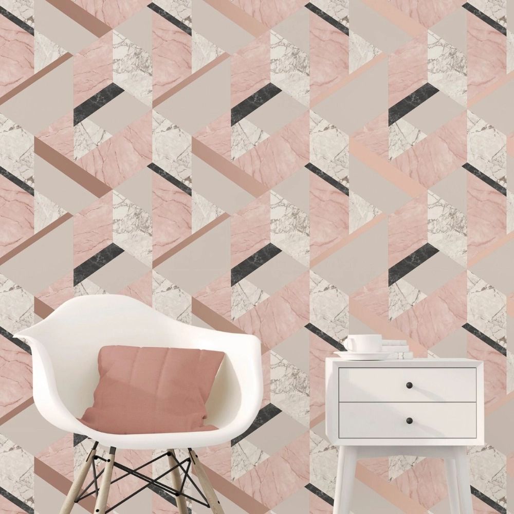 Marblesque Pink Metallic Geometric Wallpaper FD42303