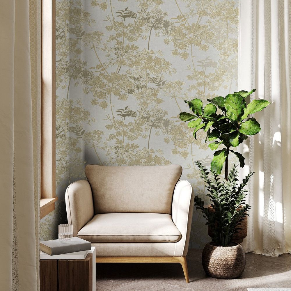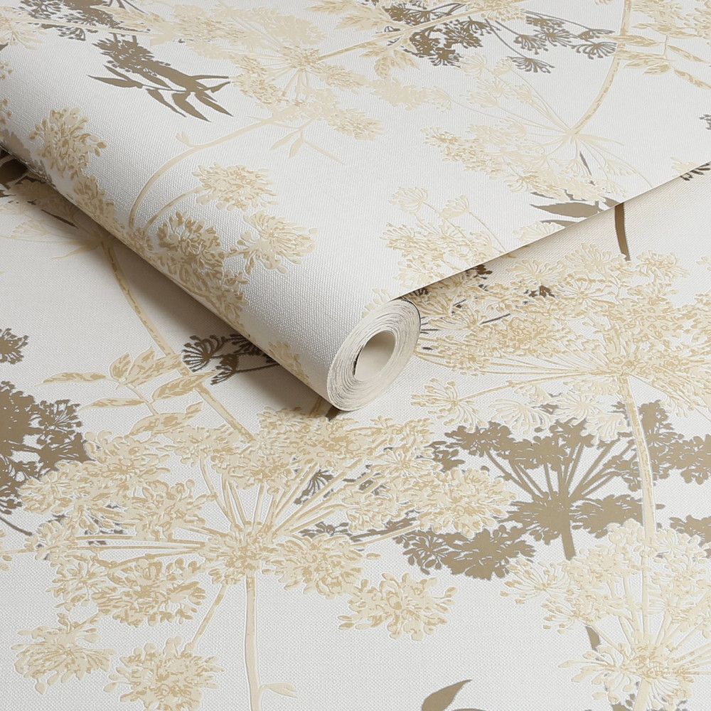Meadow Floral Cream & Metallic Gold Superfresco Wallpaper 128157