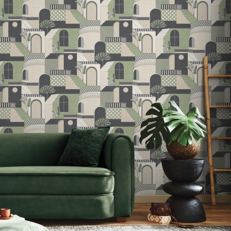 Medina Mediterranean Green Conversational Wallpaper 13100