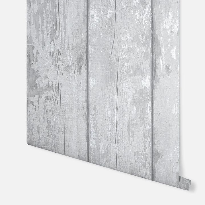 Calculate QuantityIdeal for introducing a natural look to your walls effortlessly, this pale grey washed wood wallpaper with silver metallic highlights will also ensure the sense of space is maximised. A great look for homes of all styles, including rustic country cottages and contemporary spaces. Hang this paper on a feature wall, chimney breast or throughout a room to get the look you're after. Ideal for a kitchen, garden room, dining room or hallway. Suitable for most rooms except high moisture environments, like bathrooms.