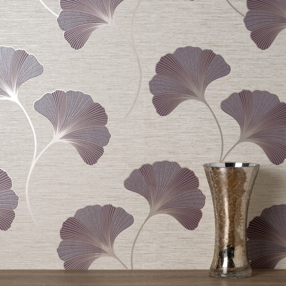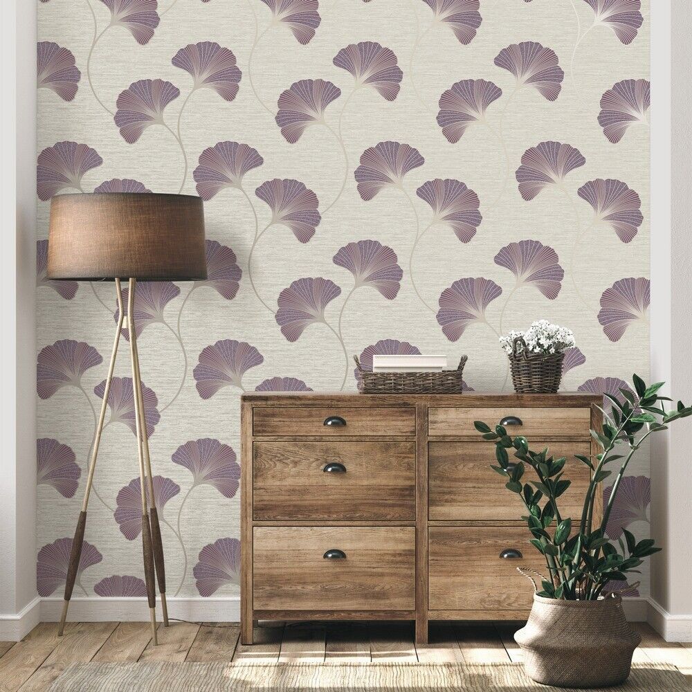 Miya Gingko Plum Textured Vinyl Wallpaper FD43150