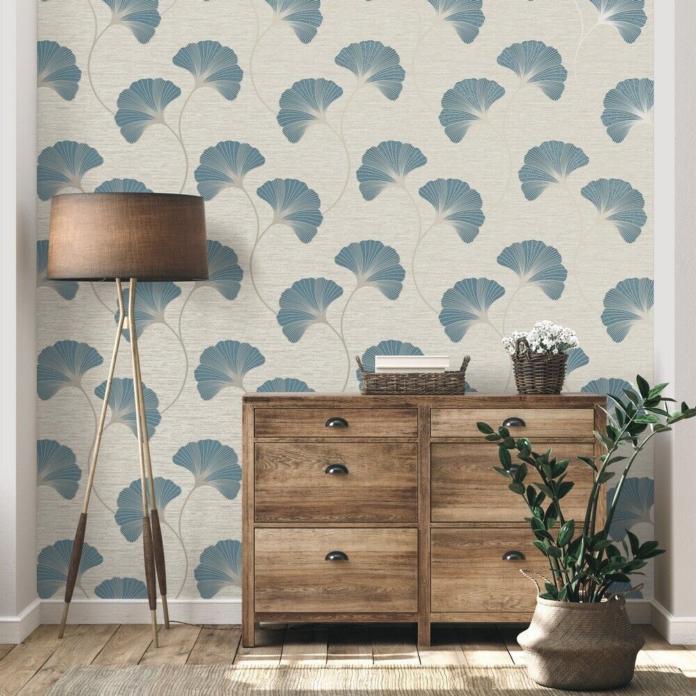 Miya Gingko Teal Textured Vinyl Wallpaper FD43151