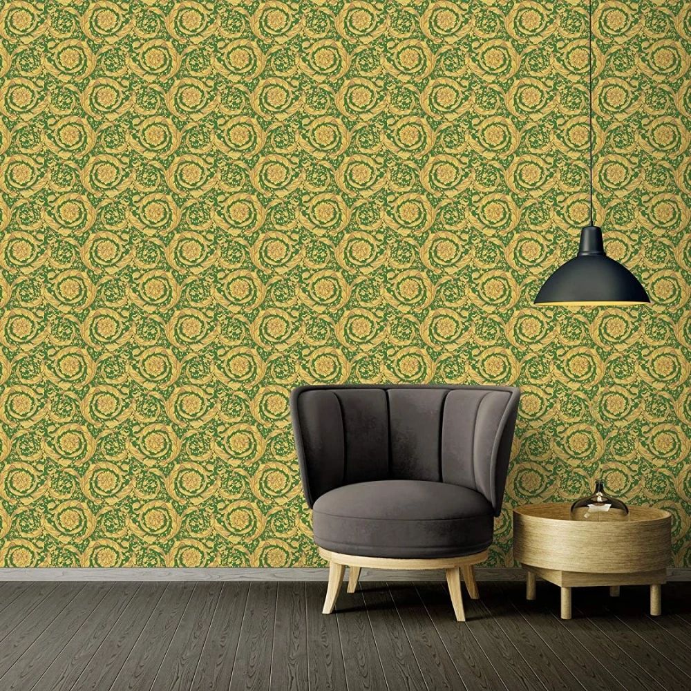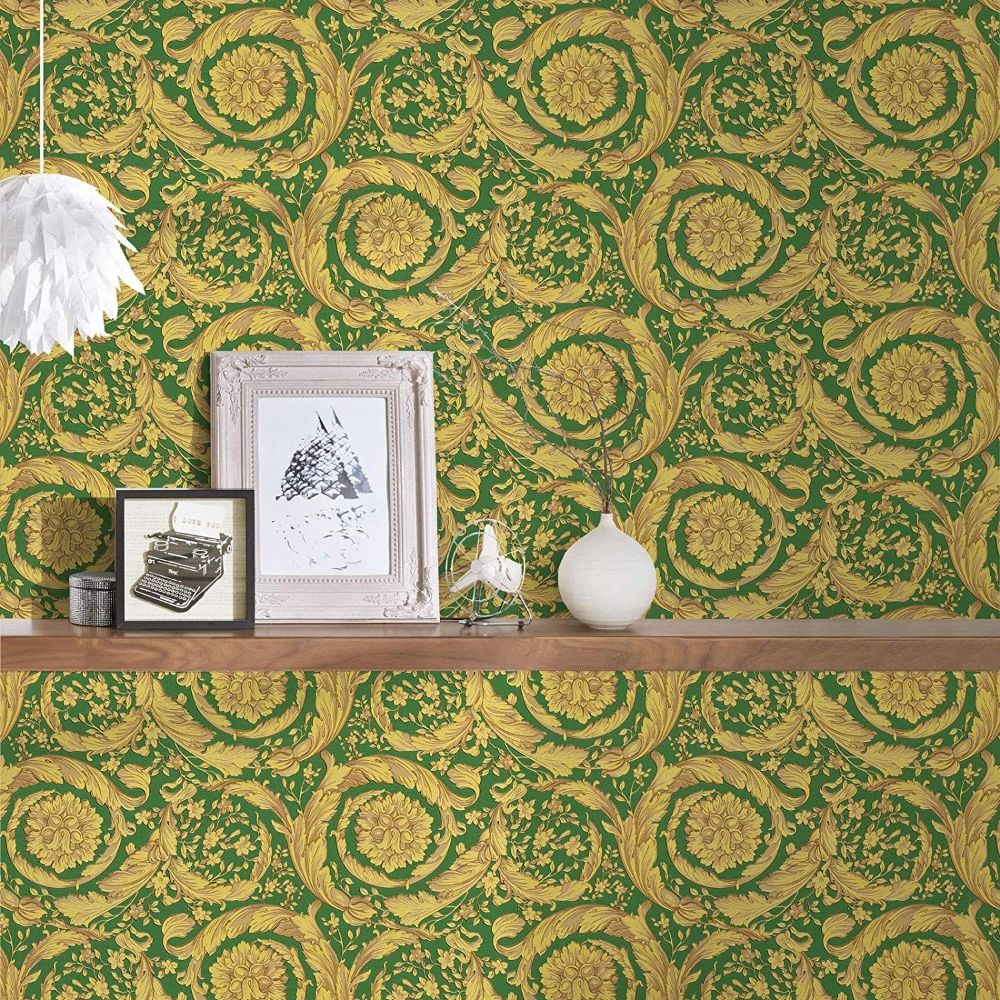 Oriental Barocco Green & Gold Luxury Vinyl Wallpaper 366926