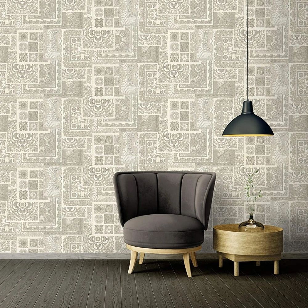Oriental Decoupage Grey Luxury Vinyl Wallpaper 370485