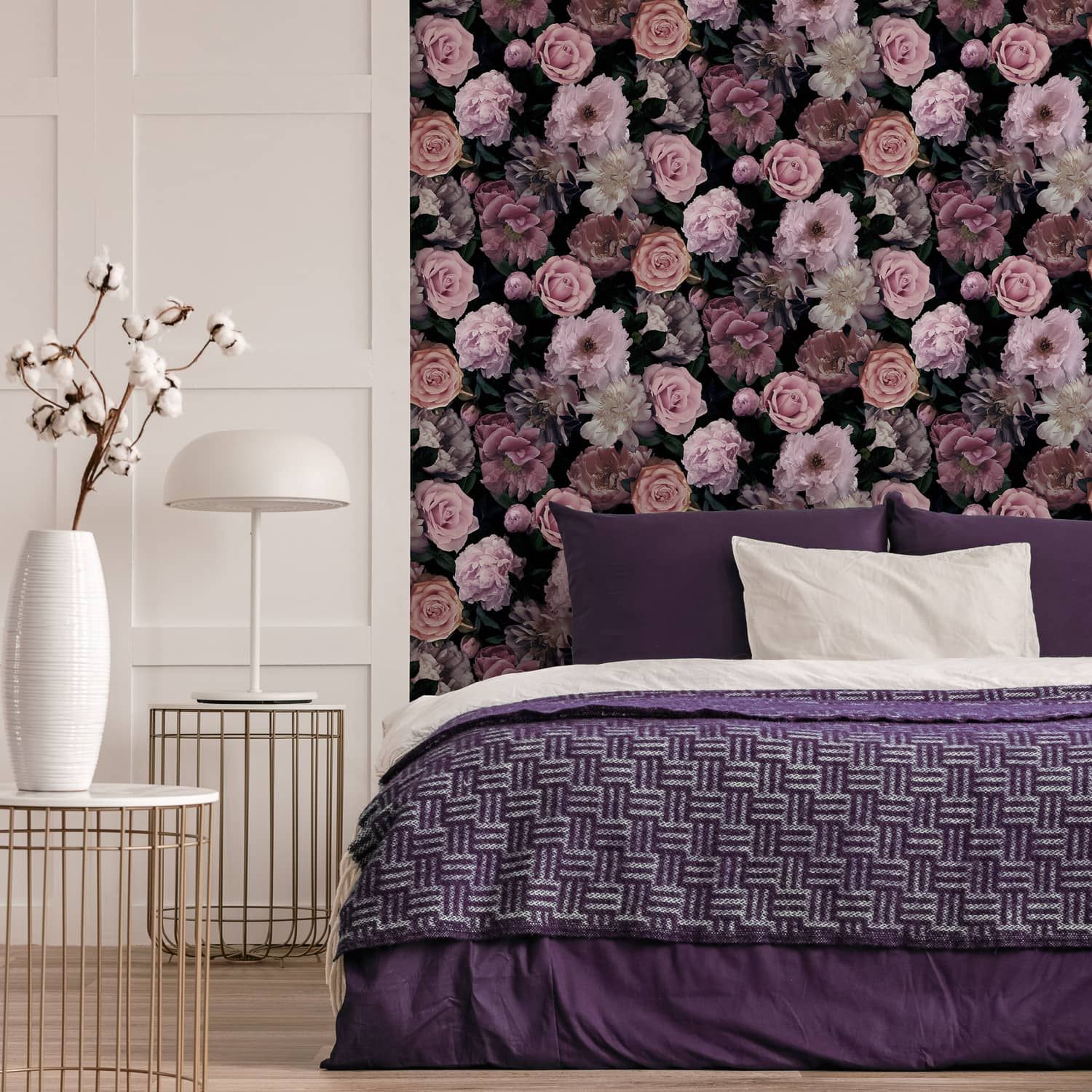 Calculate QuantityThis beautiful Drama Floral wallpaper will bring a touch of style and elegance to your home. The design features a collection of stunning flowers in various complimentary tones of light and dark pinks and purples, set on a dark and moody background. Please purchase a sample for true colour and texture