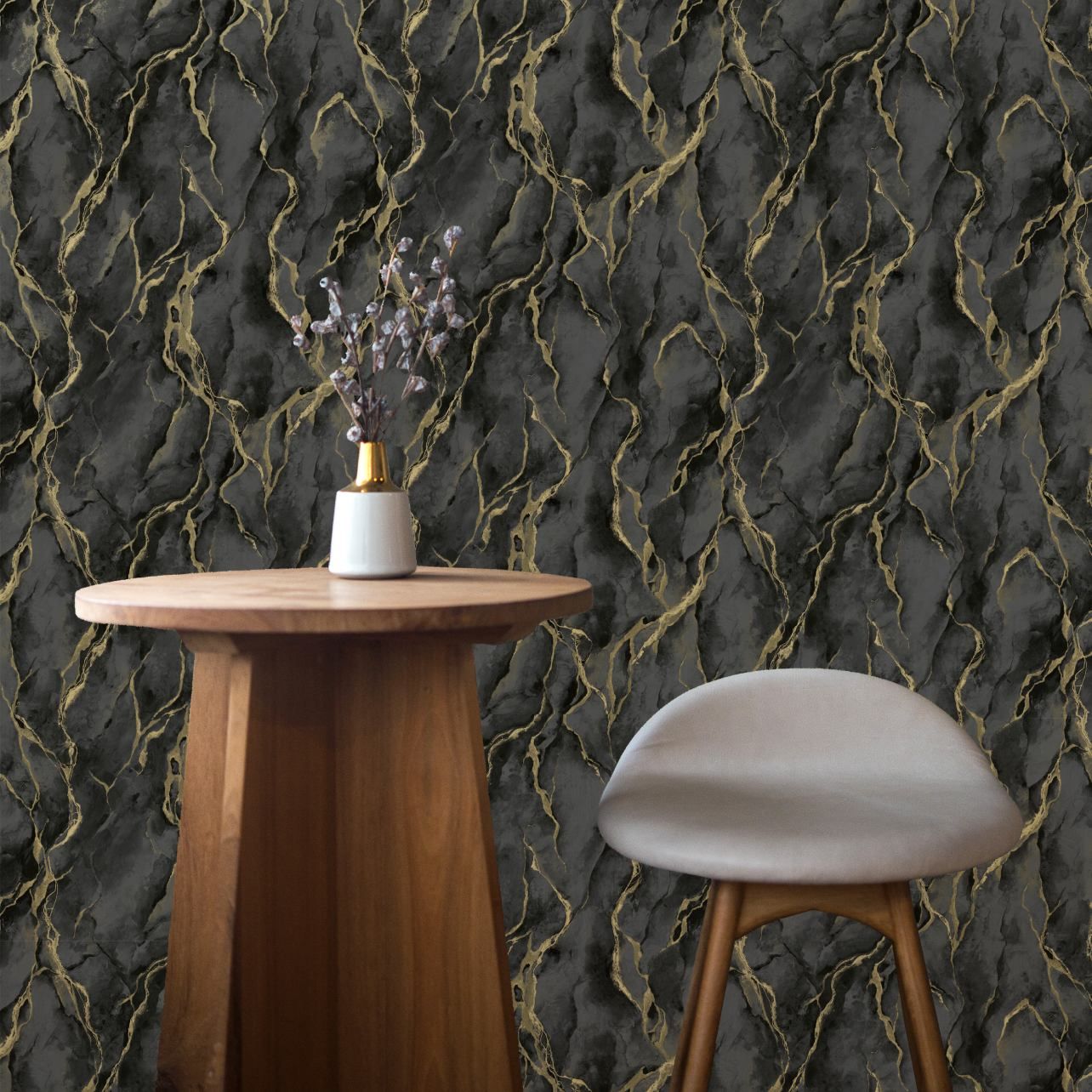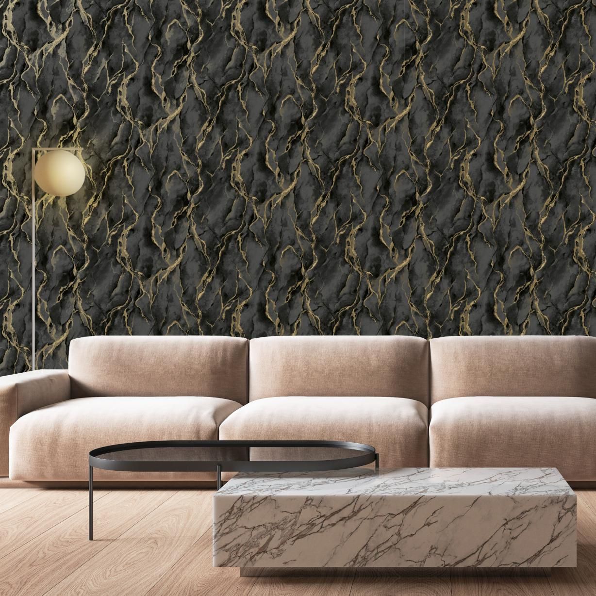 Pandora Marble Black & Gold Italian Vinyl Wallpaper 400136