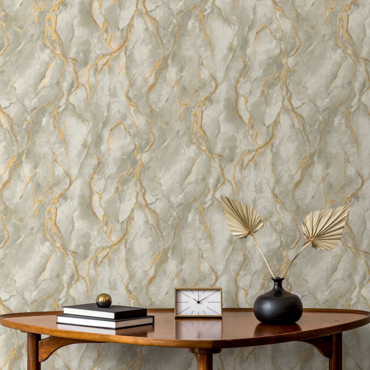 Pandora Marble Grey & Gold Italian Vinyl Wallpaper 400129