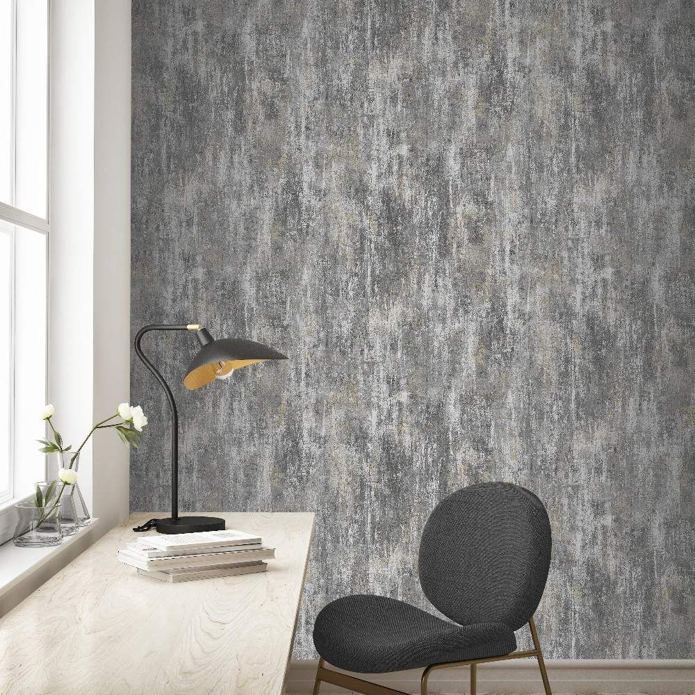 Phelan Texture Charcoal & Metallic Gold Ink Industrial Effect Wallpaper 209103