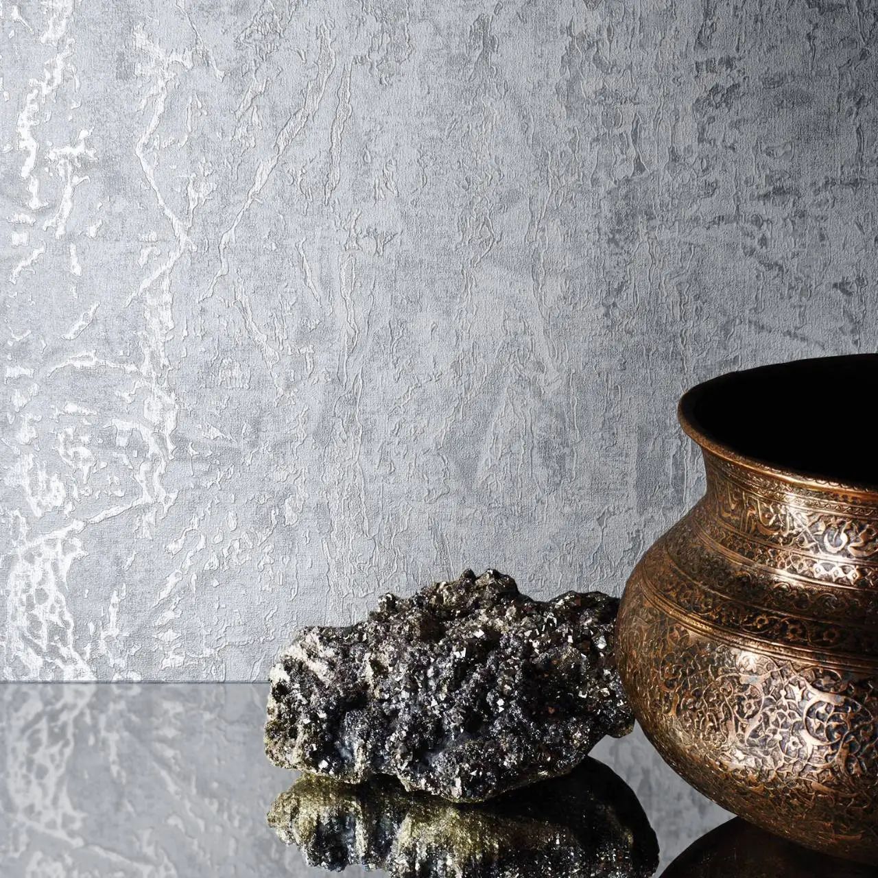 Piero Texture Grey & Metallic Silver Industrial Vinyl Wallpaper 811303
