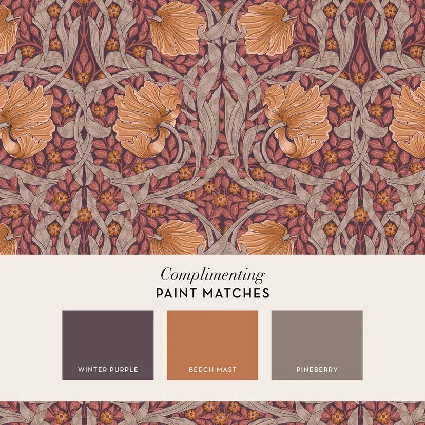 Pimpernel Scrolling Floral Plum Wallpaper by William Morris 124239