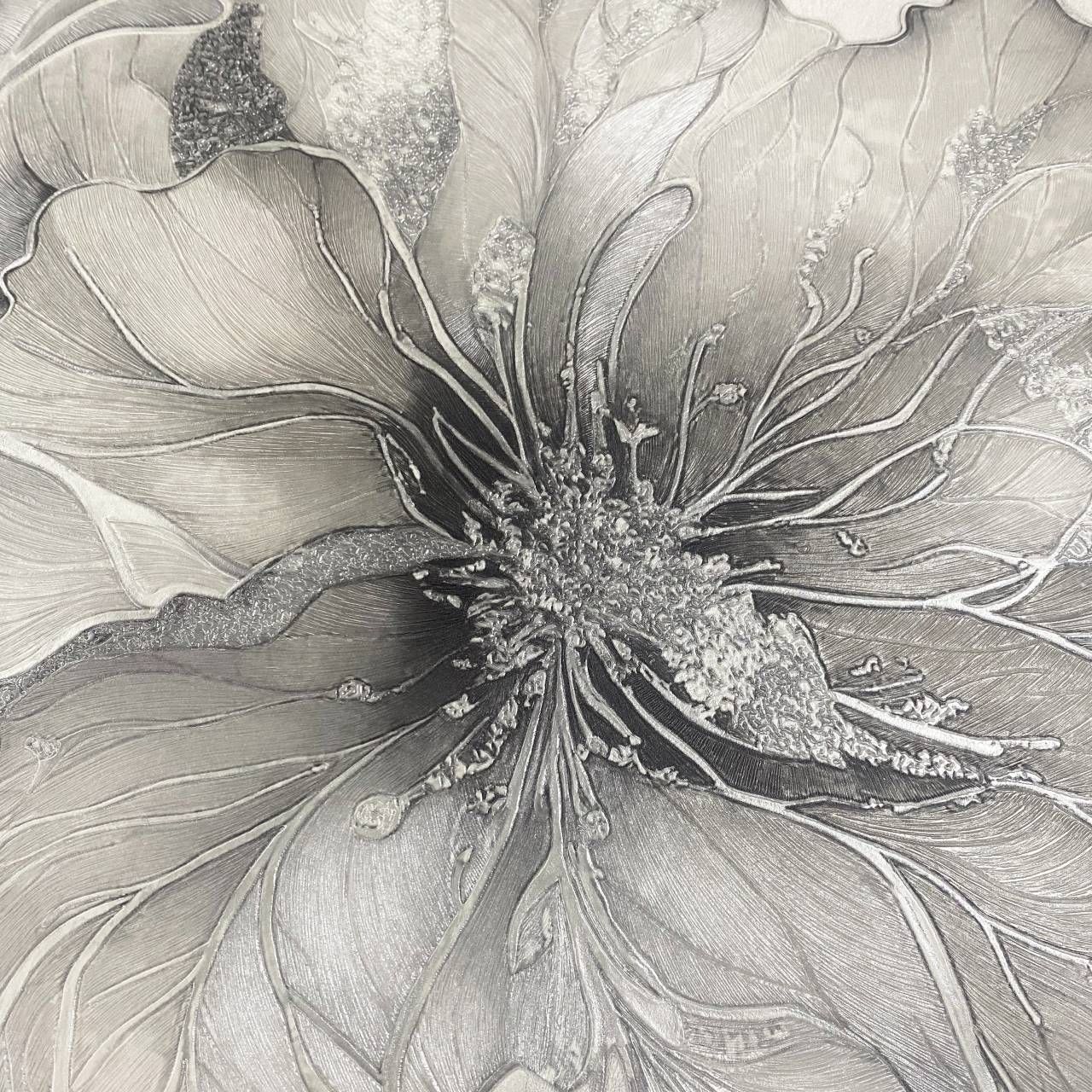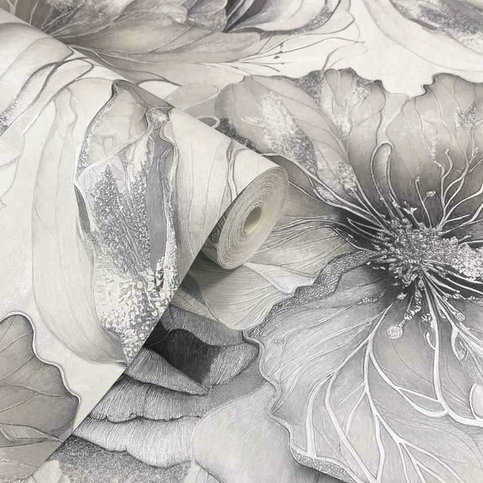Renata Floral Grey & Metallic Silver Italian Vinyl Wallpaper 811323