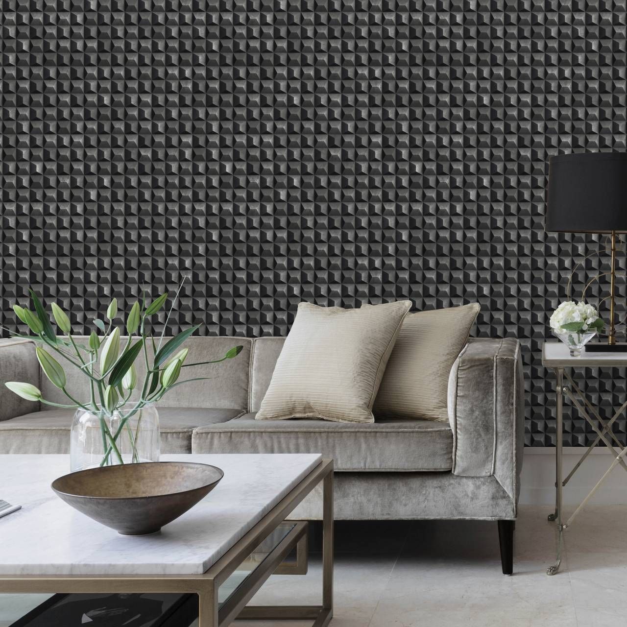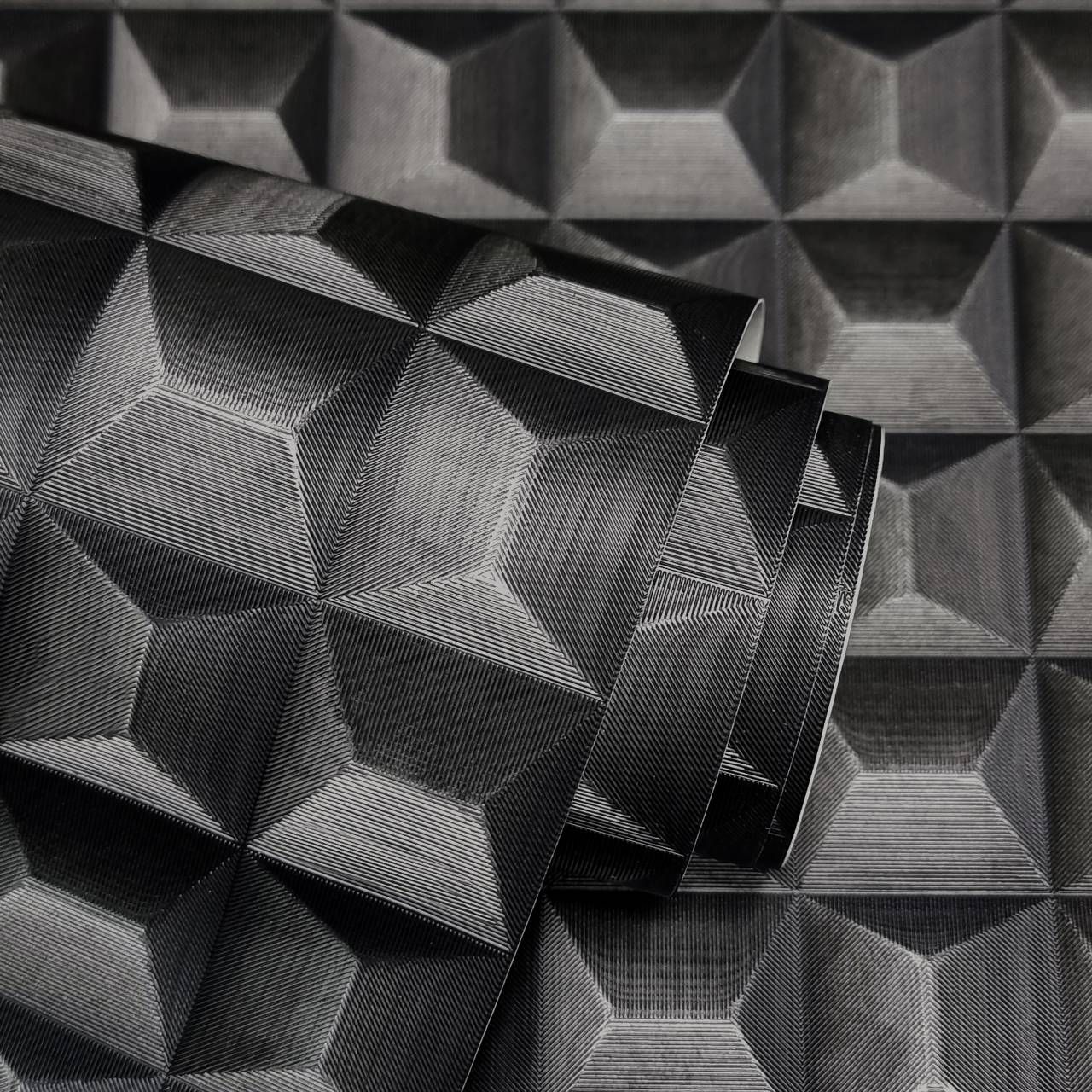 Romero 3D Geo Charcoal Black Vinyl Wallpaper M95682