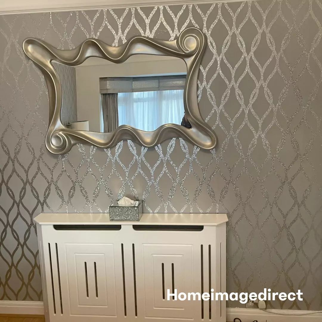 Calculate QuantityThis stunning Sequin Trellis Grey & Silver Glitter Wallpaper is brought to you by Arthouse, showcasing an intricate swirling trellis glitter pattern in a shimmering sequin finish against a soft grey pearl background. This grey and silver glitter wallpaper is the perfect way to brighten up a room, with real sparkling glitter textures giving subtle highlights and reflective qualities that will make any light bounce beautifully between your walls. Striking, stylish, and sophisticated, this silver trellis wallpaper is the ideal way to add a touch of glamour to your home, with the sparkling geometric design ideal for creating an eye-catching feature wall in any bedroom or living room. The combination of the cool grey tones with the bold glitter elements creates a visually striking effect that immediately elevates a room, with the sparkling textural finish adding to the layers of dimension this design provides. Pair with neutral tones such as beige, cream, or soft pastels to complement the calm, cool grey, or add contrast with bold colours to make the grey sparkle wallpaper stand out even more. You could even add metallic accents to enhance the silver glittering effect of the design, such as copper accessories and brass decor, or play around with adding different fabrics in the room like velvet cushions or furry blankets to add to the textural effects of the print. Adding natural elements like wooden furniture and trailing green plants can also work to add a touch of warmth and balance out the space. Printed on high quality textured vinyl wallpaper, this design uses a paste the wall application method, so all you need to do is apply your paste to pre-cut strips of paper before decorating your walls. The material is also entirely spongeable, meaning you can easily freshen up your walls with a damp cloth for a quick, hassle-free clean. Please note: Due to the nature of the glitter sequin finish, some glitter shedding is completely normal and should be expected—this is not considered a fault but a characteristic of the material. We strongly recommend ordering a sample before purchasing to ensure the design and finish are suitable for your space and personal preference
