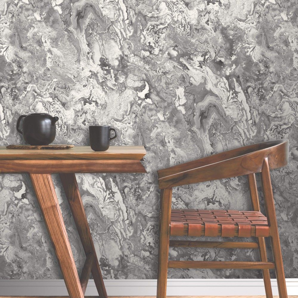 Serafina Marble Black & White Vasari Italian Luxury Vinyl Wallpaper 535051
