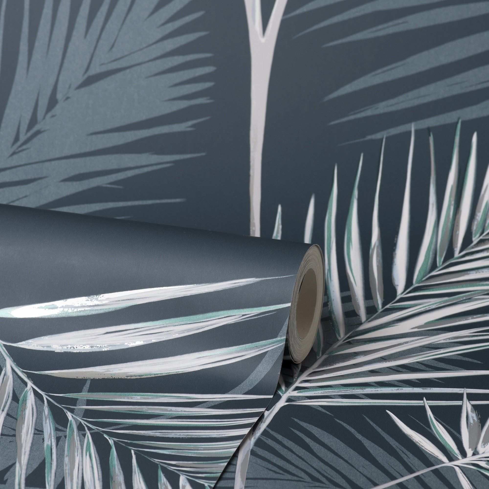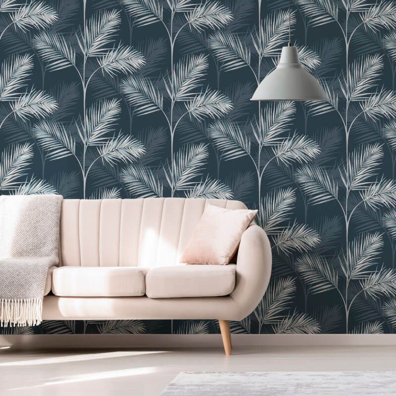 South Beach Navy Blue Palm Leaf Wallpaper FD42681