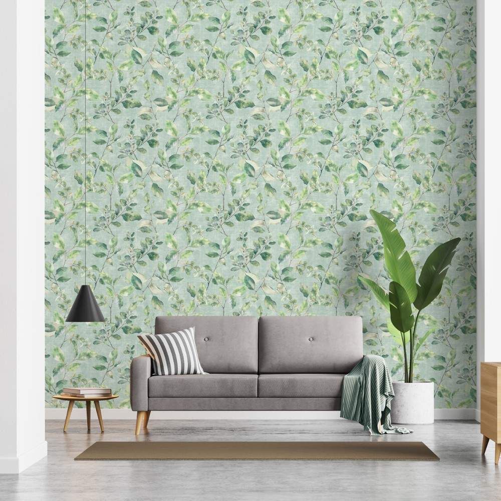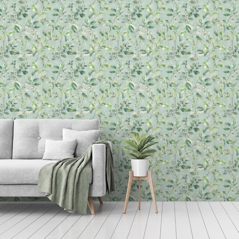 Spring Springs Sage Green Leaves Botanical Wallpaper 925501