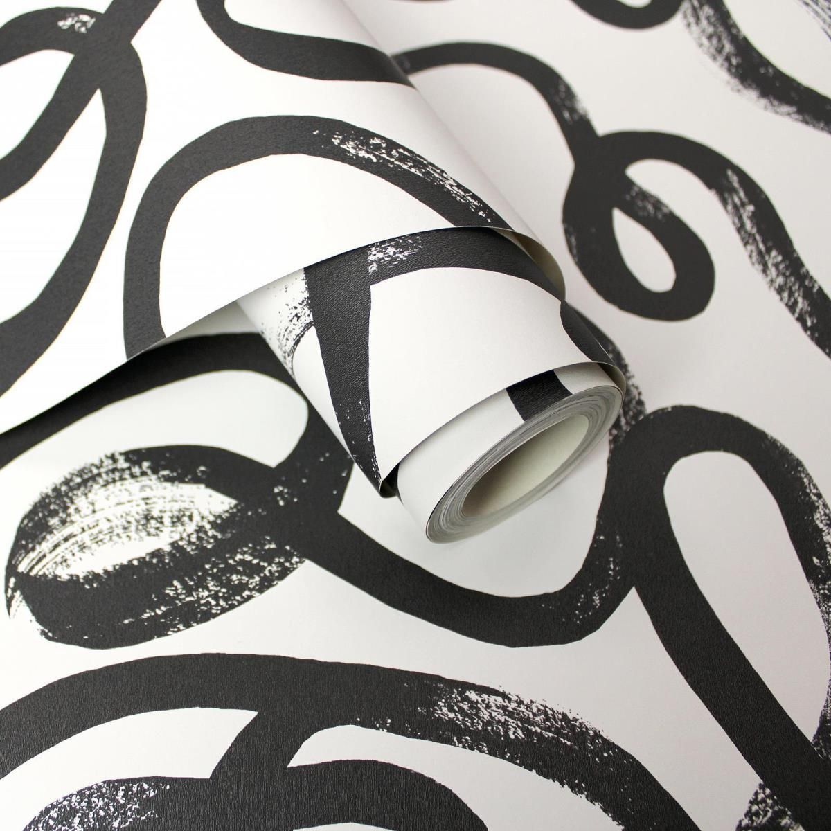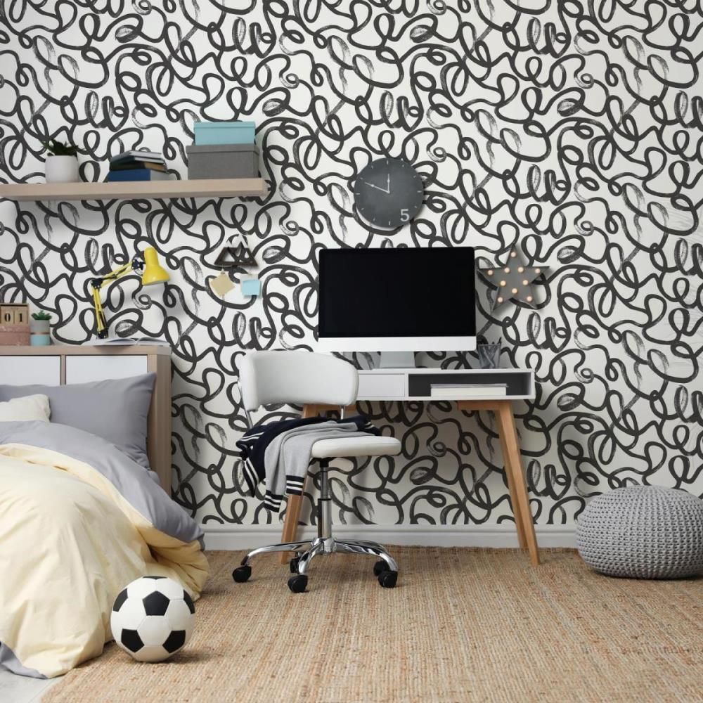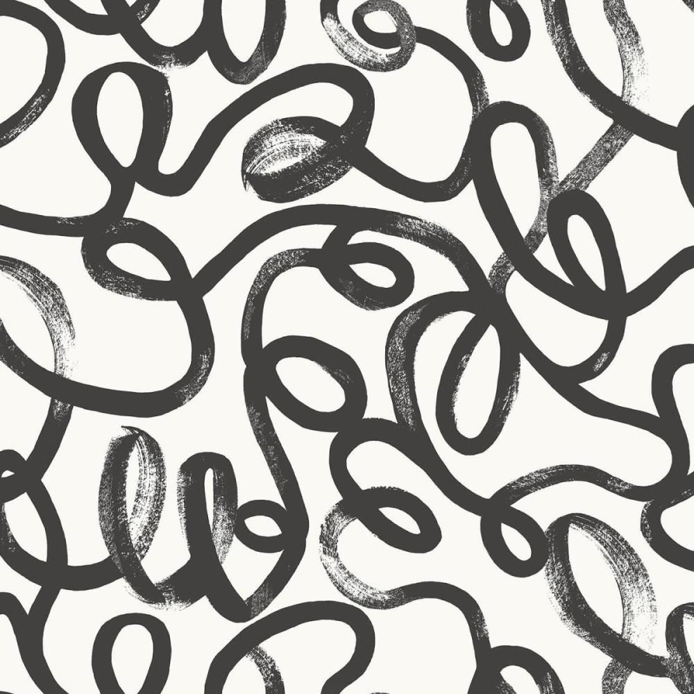 Squiggle Doodle Black & White Conversational Wallpaper 13360