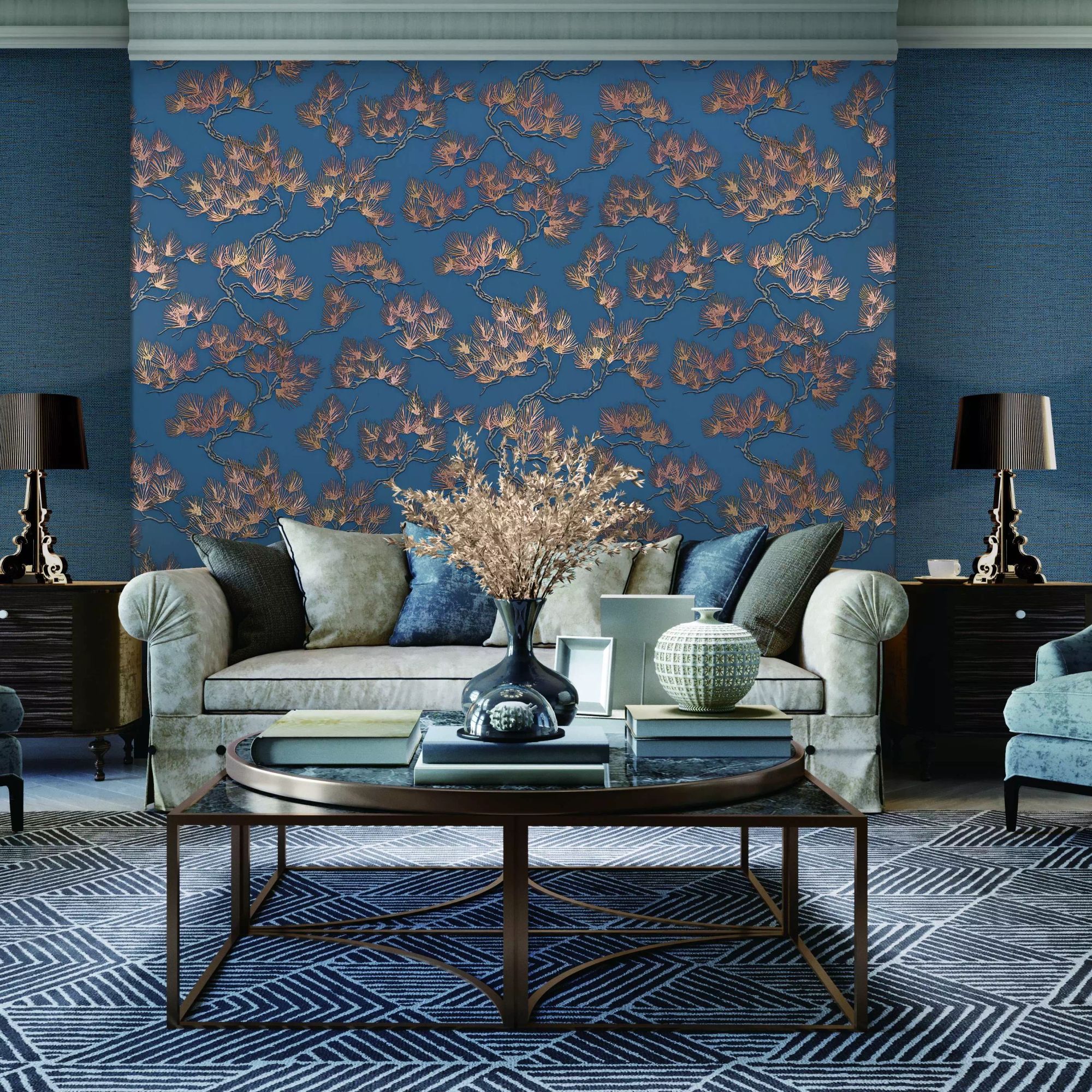 Stitch Pine Tree Blue Vinyl Wallpaper WF121017
