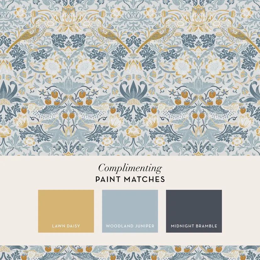 Strawberry Thief Soft Blue Renowned 1883 Wallpaper by William Morris 124232