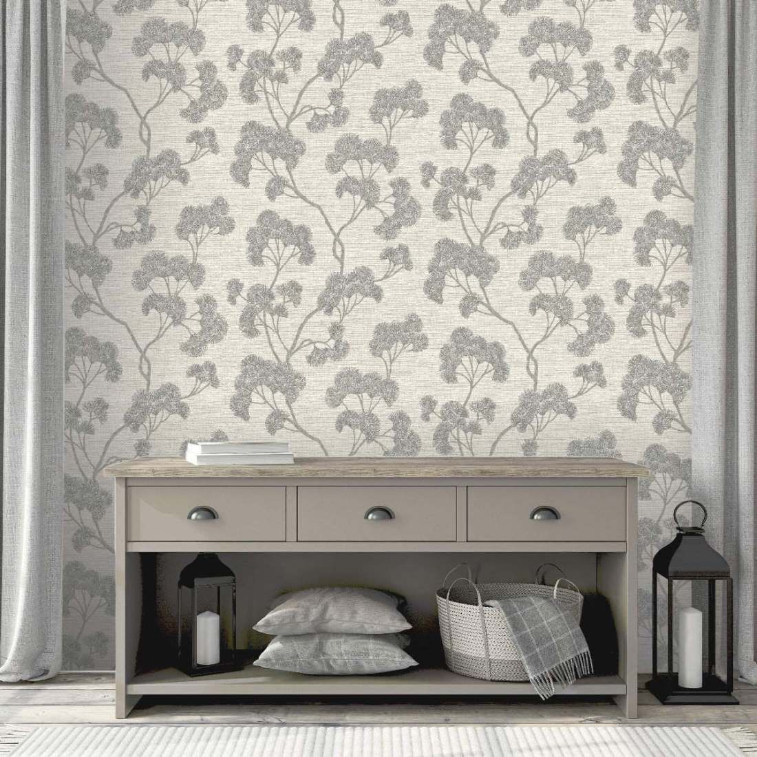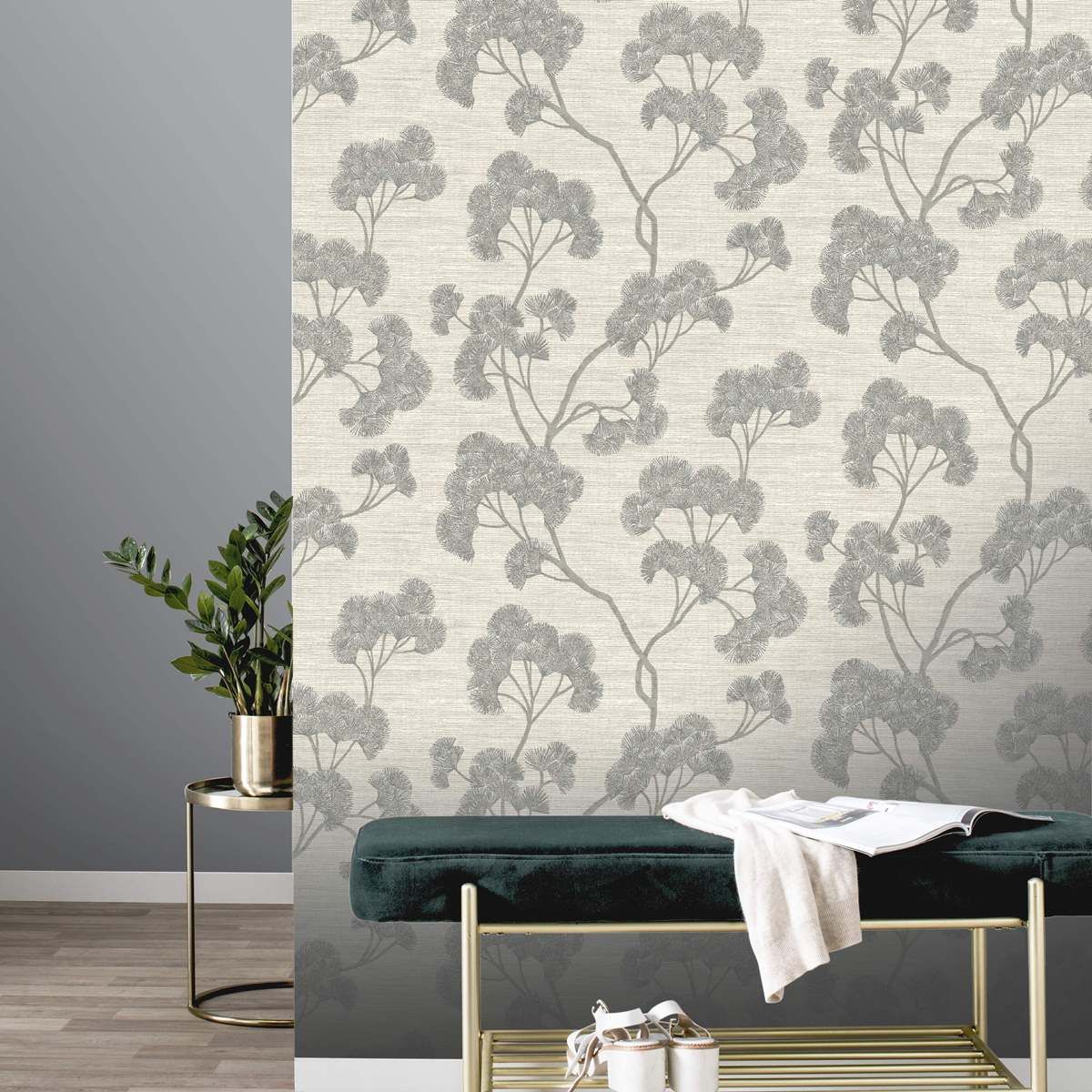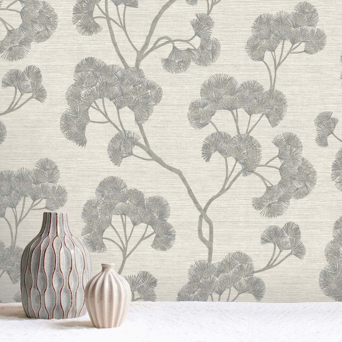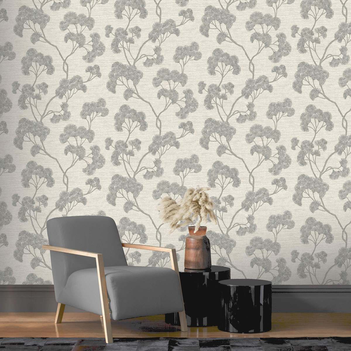 Sumatra Ginkgo Trees Grey & Silver Floral Wallpaper 316025