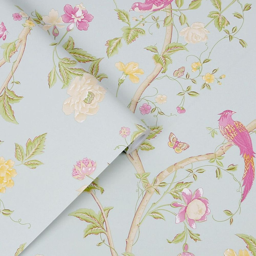 Summer Palace Birds Duck Egg Laura Ashley Wallpaper 113392