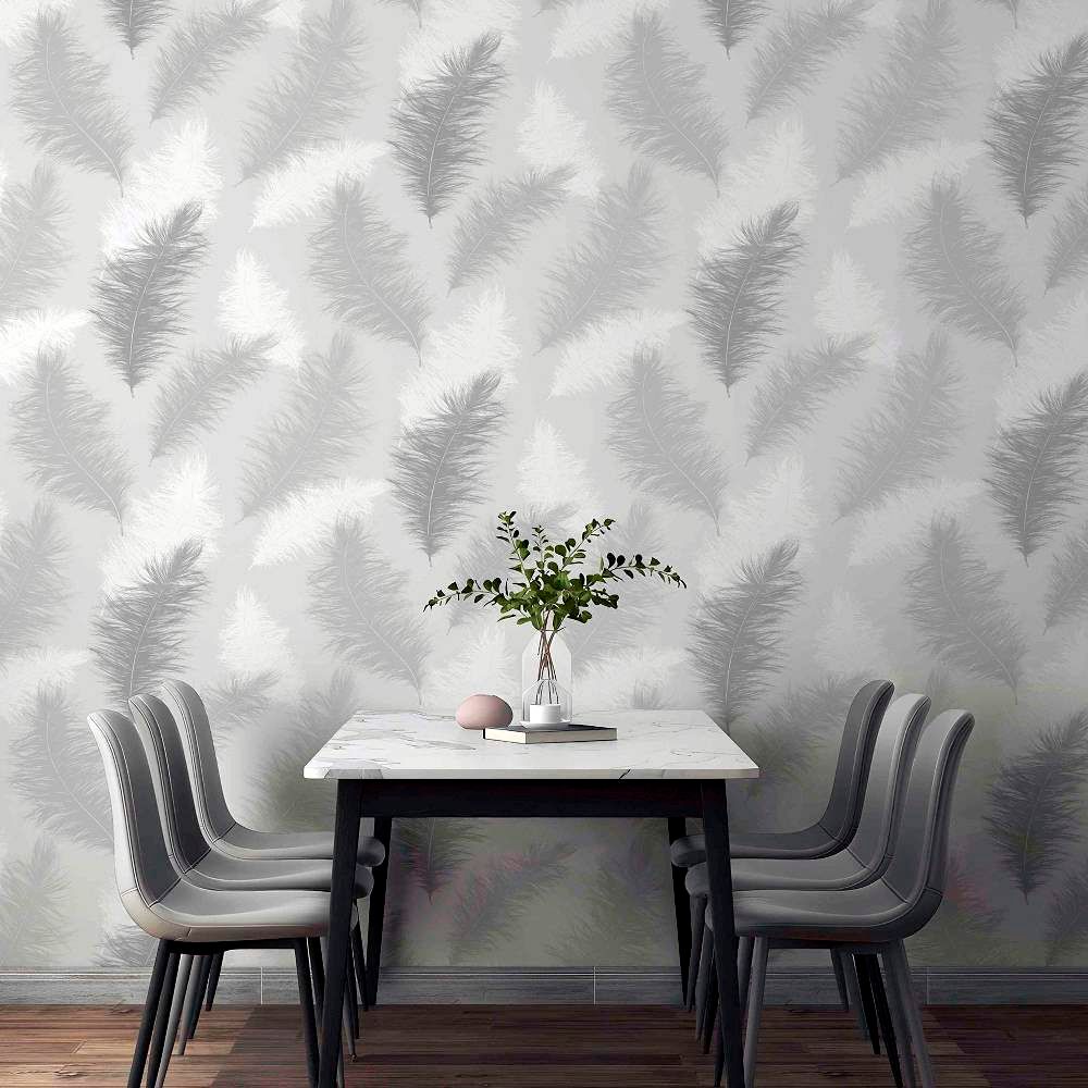 Calculate QuantityAn incredibly attention-grabbing wallpaper featuring a trendy design and a stylish blend of colours that captivates the eye. It juxtaposes a muted grey backdrop with delicately shimmering gel-effect feathers, adding a touch of opulence. With its expansive pattern, it promises to make a bold statement and enhance the feeling of spaciousness within your room. Whether your home decor leans towards the contemporary or classic, this wallpaper will effortlessly establish a striking focal point, whether in a bedroom or living area. It's perfect for most rooms, with the exception of high-moisture environments such as bathrooms.