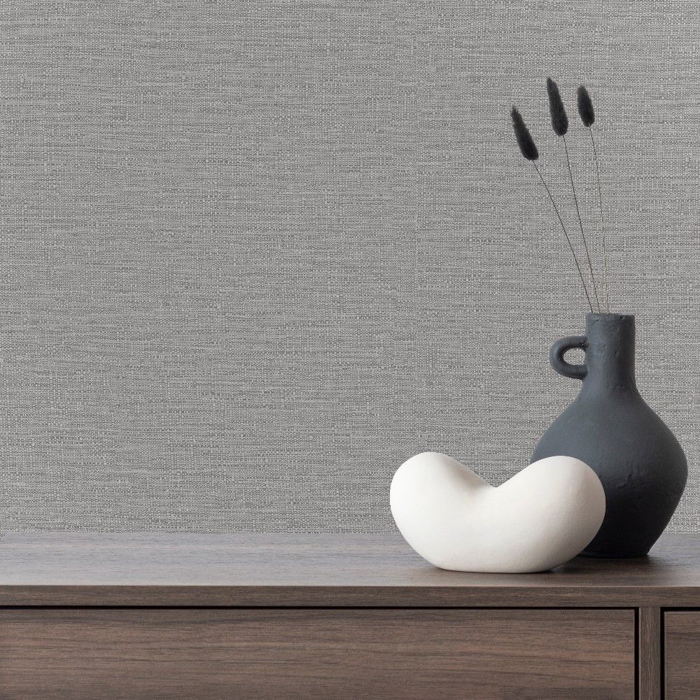 Telma Plain Texture Grey Vinyl Wallpaper 199508