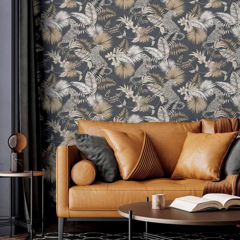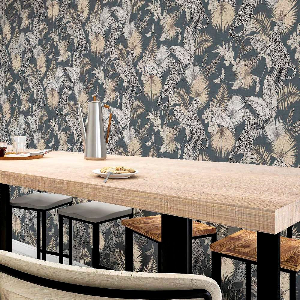 Calculate QuantityElevate your home decor with the allure of our Jungle-inspired Leopard Wallpaper. Transform any space with its sophisticated exotic charm. This wallpaper showcases regal leopards amidst lush tropical flora, all bathed in serene neutral hues with a subtle metallic gleam. It's the ideal selection to create a captivating focal point in your home. Set against a contemporary dark backdrop, it exudes drama and impact. With easy application, it's a versatile choice that can enhance the aesthetics of your living room, bedroom, or hallway.