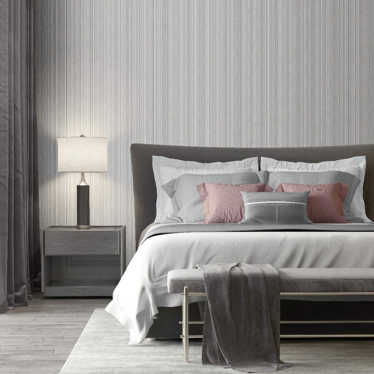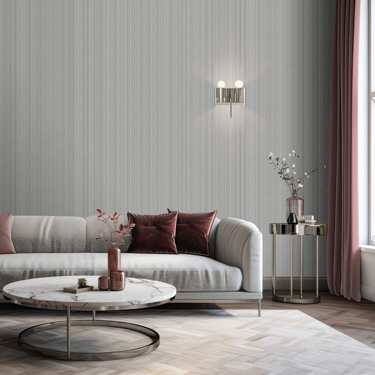 Venezia Stripe Light Grey Lavish Shimmer Vinyl Wallpaper M66509