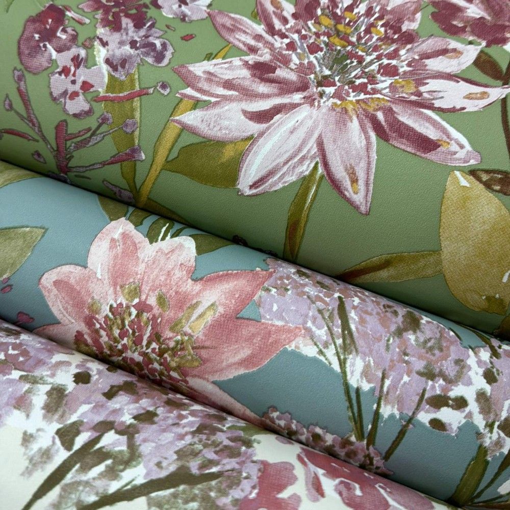 Wildflowers Meadow Sage Green & Orange Floral Wallpaper A61601