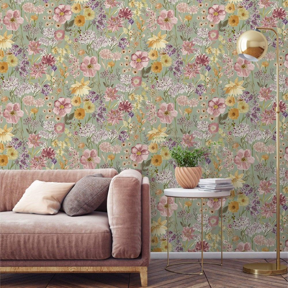 Inspired by the natural world, this gorgeous wallpaper of wildflowers features a detailed arrangement of meadow flowers that are hand-painted to create a charming watercolour impression. Would look stunning in any space.