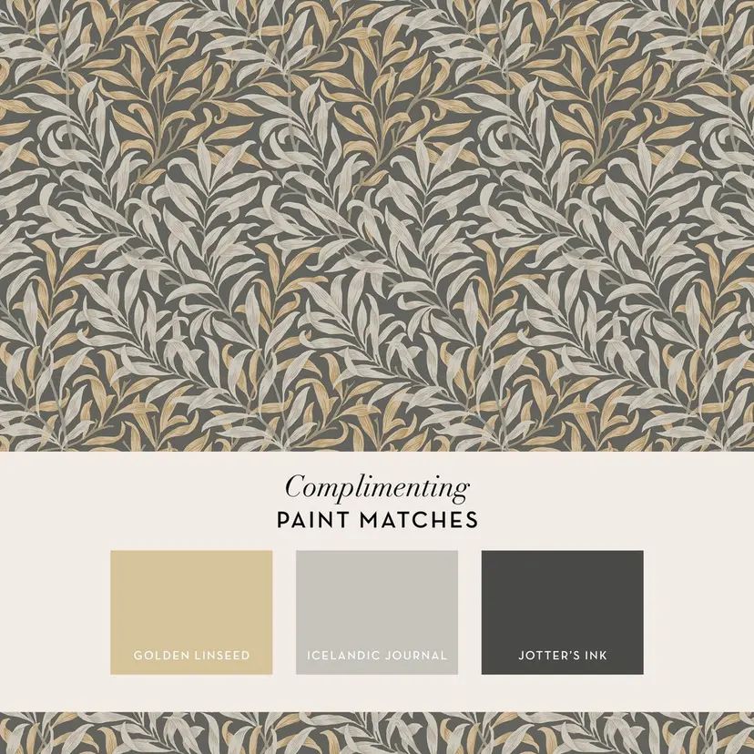 Calculate QuantityThis beloved pattern from The Gallery's collection traces its roots to early printed chintz and wallpaper designs. Inspired by the graceful form of the willow, a favourite of William Morris, it was first created as wallpaper in 1887 and later adapted to fabric in 1895. Produced at Merton Abbey using block printing, its slanted branch design blends abstraction with nature. The Willow Bough Charcoal variant features soft gold and creamy beige leaves cascading elegantly against a charcoal backdrop, adding understated sophistication. The matte finish offers a modern touch to this timeless design.