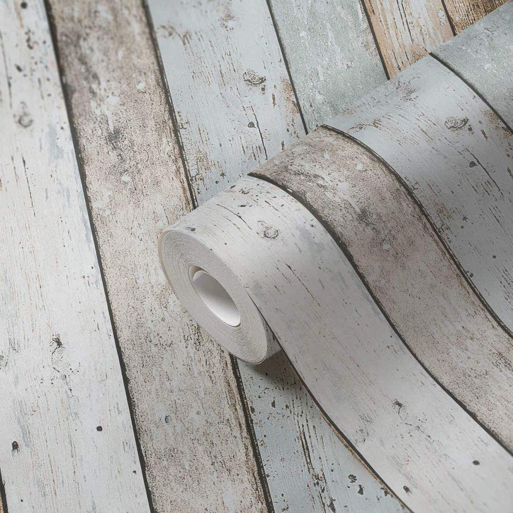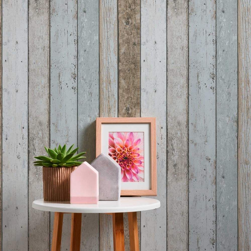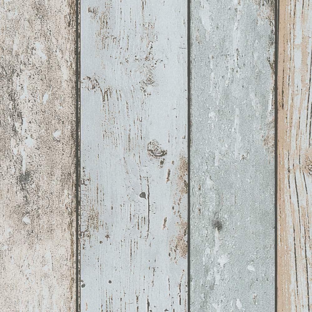 Wooden Wall Shabby Chic Panel Blue & Brown Wallpaper 8999-27