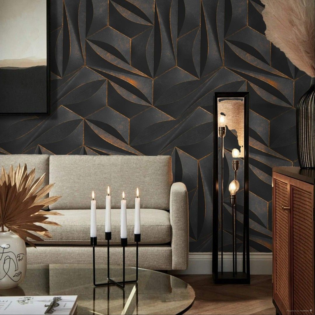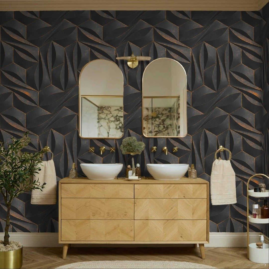 3D Effect Geometric Mural Charcoal Dubai Collection Vinyl 391791