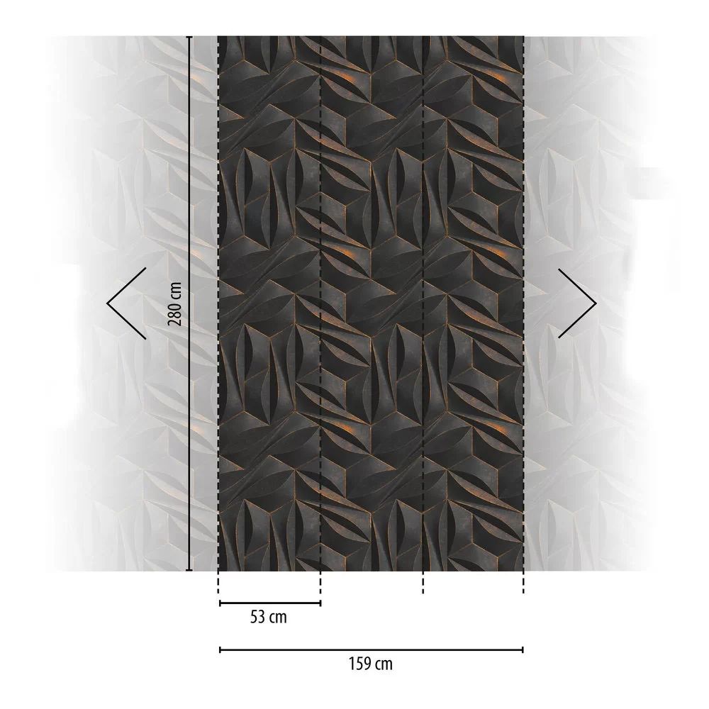 Calculate QuantityThis contemporary geometric design features a three-dimensional effect, creating the illusion of undulating panels. Presented in a striking charcoal colorway, it comes in three 2.8-meter lengths on a 53cm wide roll. The mural forms a seamless, side-to-side repeating image.
