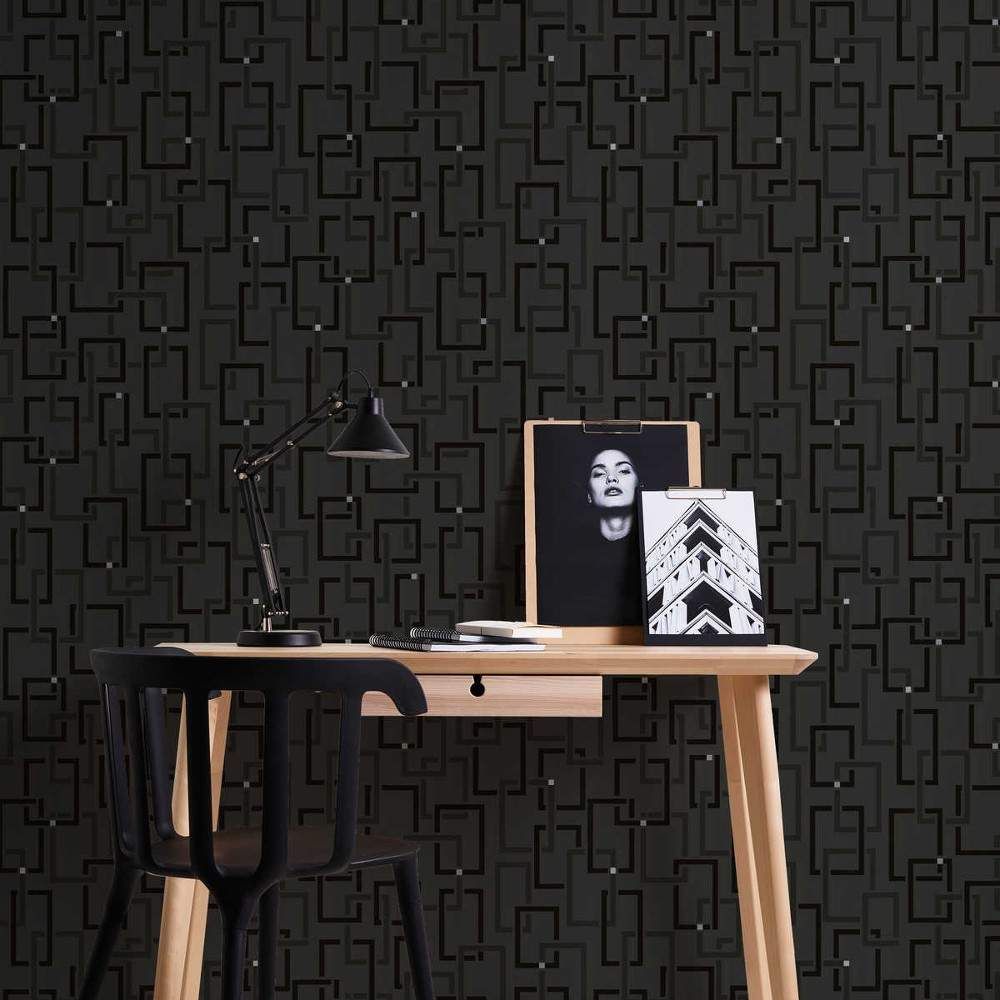 Exquisite, stylish and elegant. This wallcovering features a link inspired geometric print held together on a soft matt background with glossy filled elements. Please purchase a sample for true colour and texture.