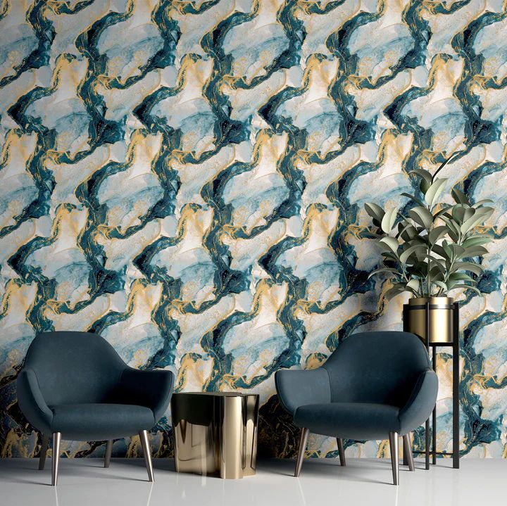 Calculate QuantityThis captivating marble wallpaper showcases stunning swirls of white, shades of blue, and gold metallic accents. The handcrafted design is sure to add a touch of elegance to any room in your home. Whether you choose to hang it on all four walls or as a feature wall in your living room or bedroom, this marble wallpaper is designed to make a stylish statement.