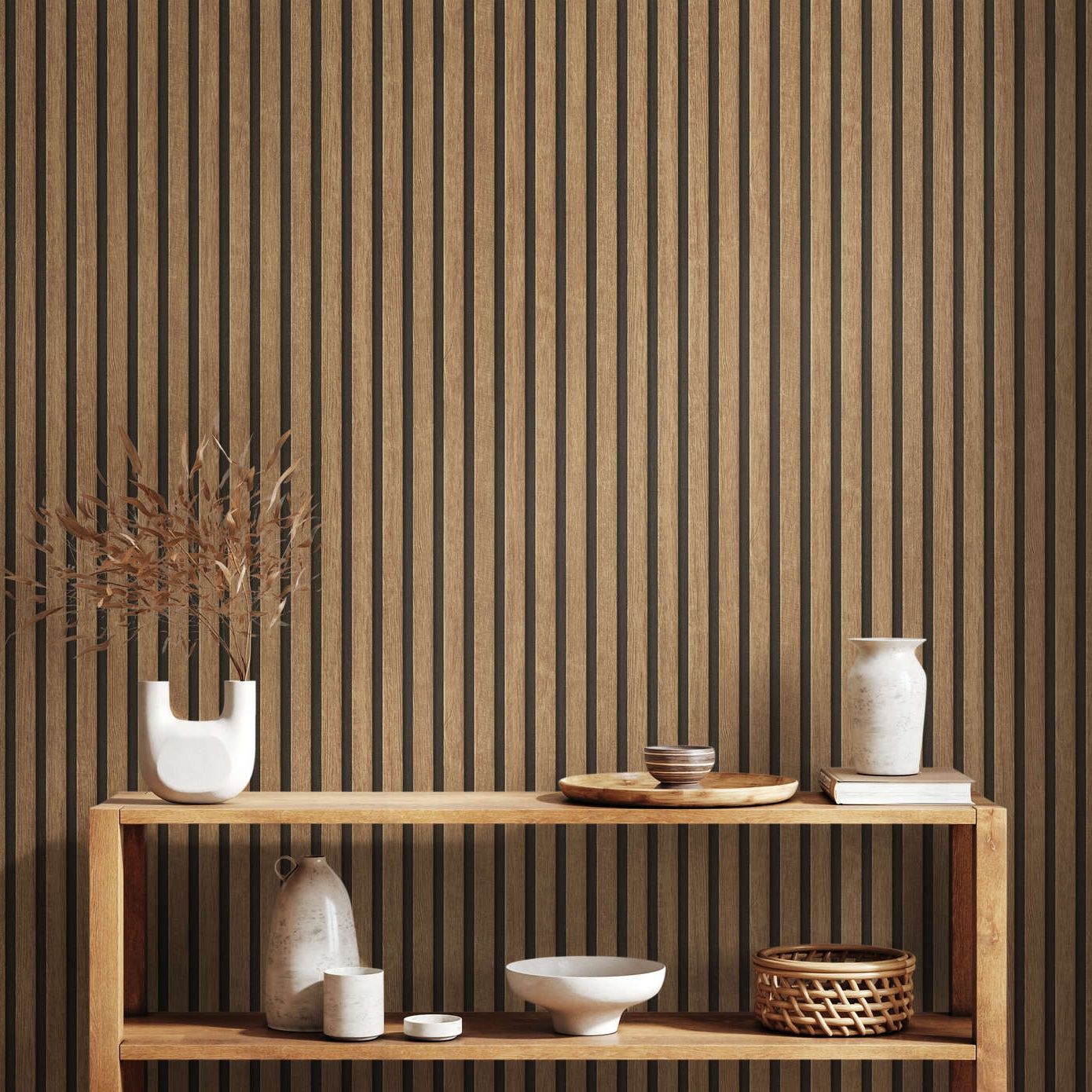 Calculate QuantityTo add a contemporary flair to your Scandinavian-themed abode, consider this Wood Slat Vinyl Wallpaper. Using shading and intricate detailing, the design showcases narrow wooden slats in the natural light oak tones, imparting a lifelike quality to the wood and creating an eye-catching 3D effect. This high-quality vinyl wallpaper is easy to install by pasting the wall and boasts a subtle textured finish. It would be an excellent choice for covering an entire room or creating a statement feature wall.