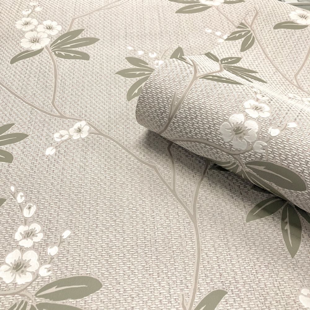 Amelie Blossom Trail Beige & Green Wallpaper 3020