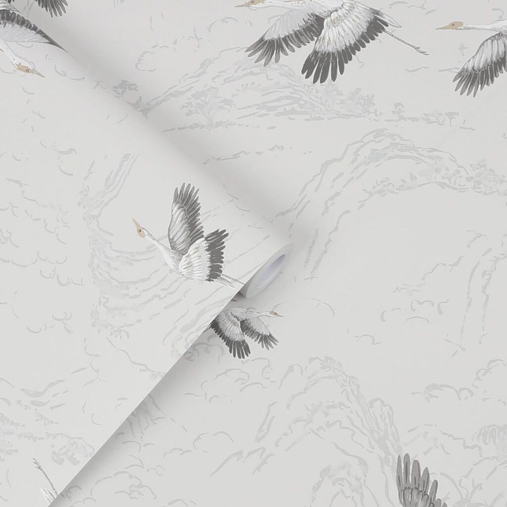 Animalia Cranes In Clouds Silver Contemporary Laura Ashley Wallpaper 113394