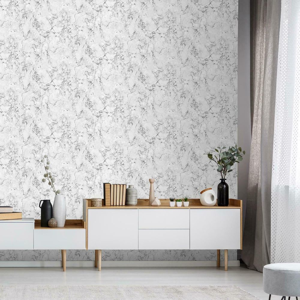 Athena Marble Light Grey/ White & Metallic Silver Wallpaper 4021