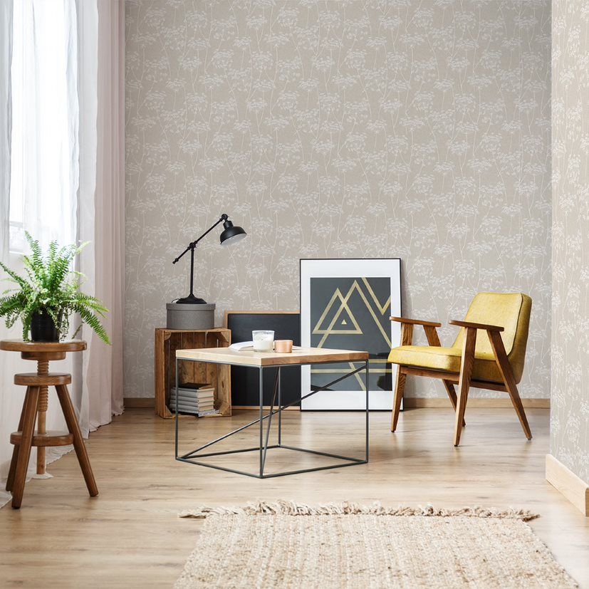 Effortlessly elegant, this delicate sprig motif design creates the perfect feature wall by extending over a textured neutral base.