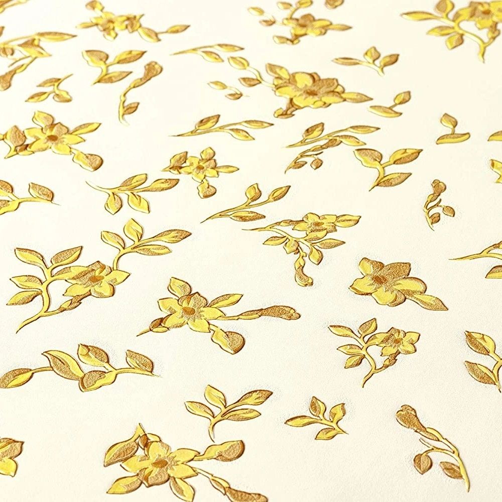 Barocco Ditsy Flowers White & Gold Luxury Vinyl Wallpaper 935855